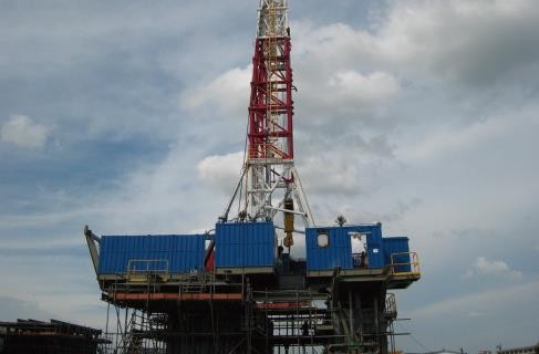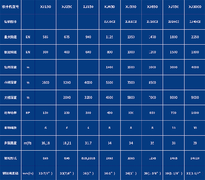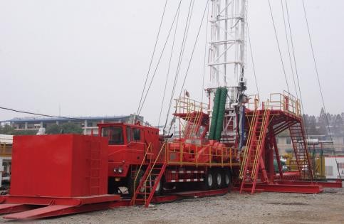 海洋修井机:海洋修井机固定在修井平台上,是一种无绷绳修井机,能够满足海洋风载要求,液缸起升井架,能够实现横向和纵向移动。双节自升式井架。根据需要配备泥浆泵和泥浆净化系统。
